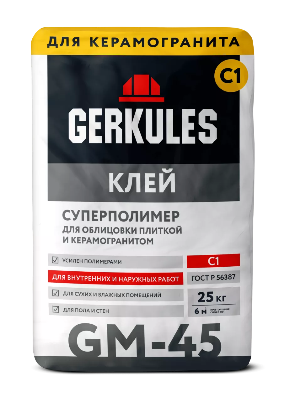 Клей для кафеля суперполимер GM-45 /25кг "Геркулес"