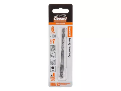 Сверло по бетону 6х100мм шестигр. GEPARD (GP0226-100)